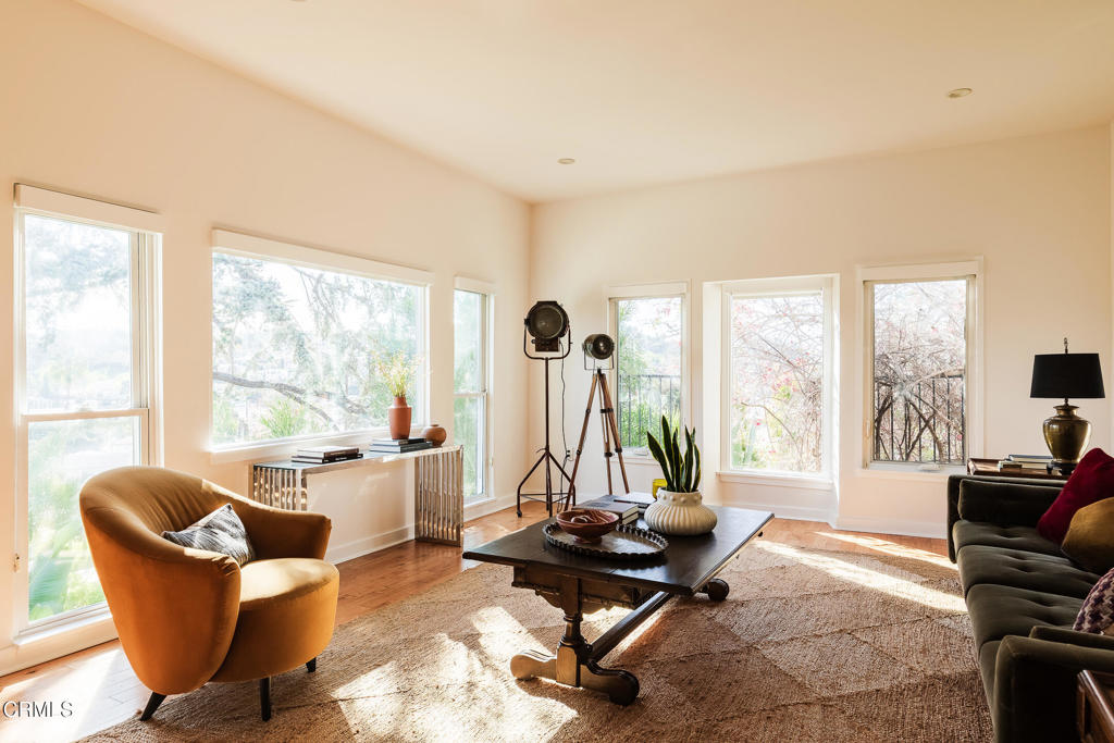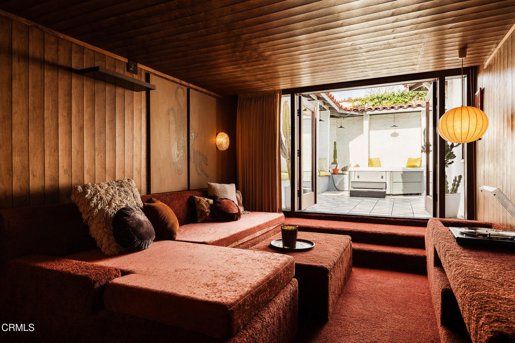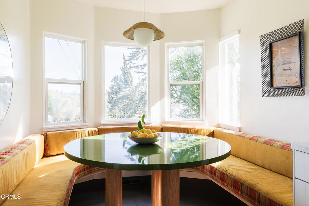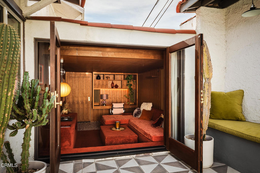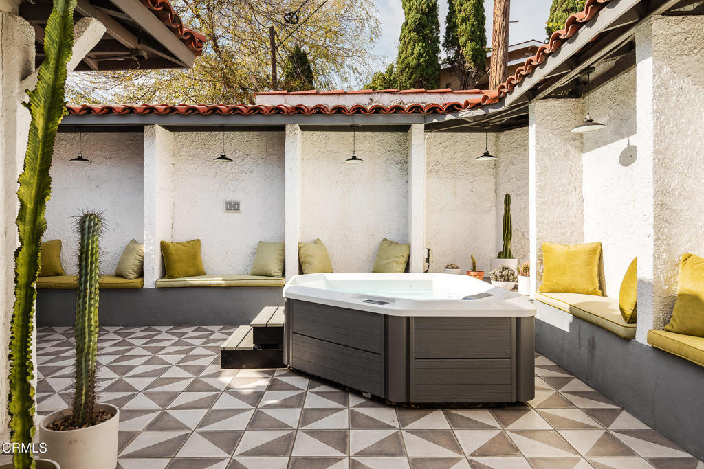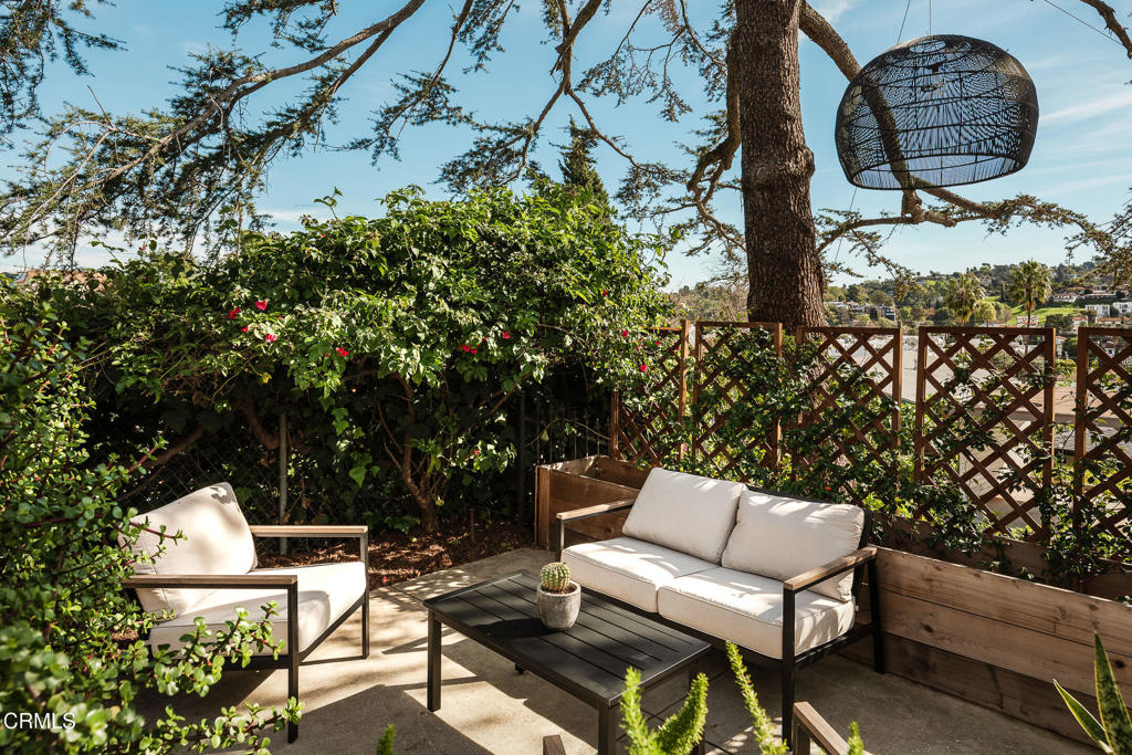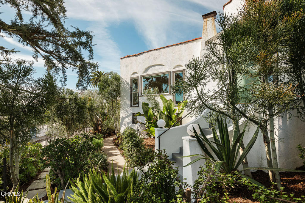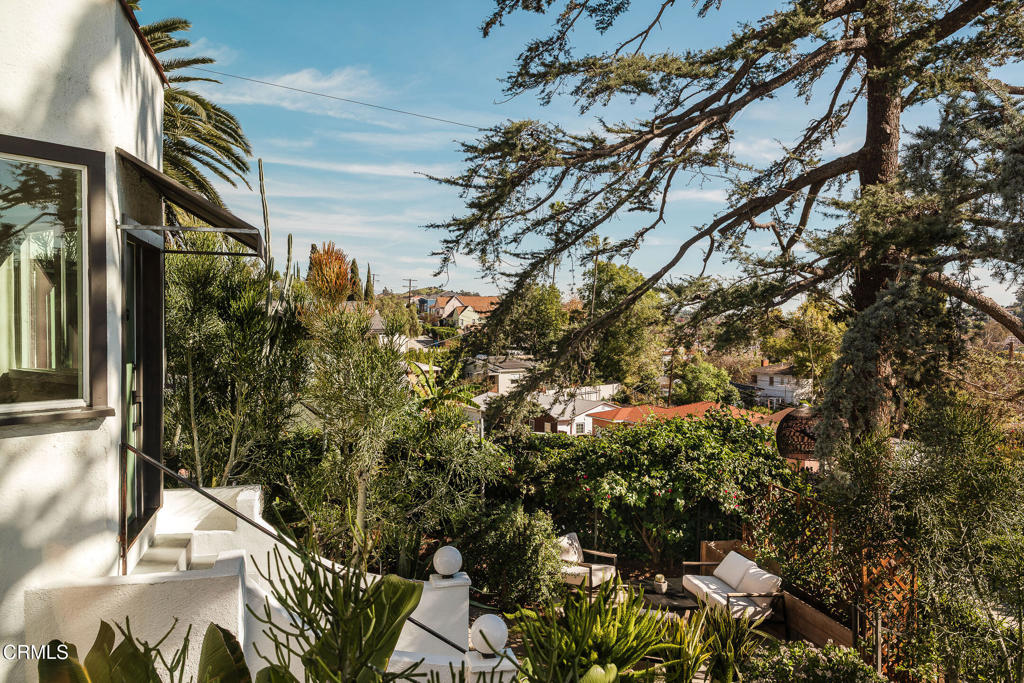 Perched atop a hill in Glassell Park, 2771 Lytelle Place is a soulful 1923 Spanish retreat with sweeping views and sunrise-to-sunset light. The home opens into a dedicated entry space that flows to the expansive living room - open, bright, with high ceilings - ideal for both relaxed everyday living and entertaining. There are two roomy bedrooms and bathrooms, offering comfortable, well-proportioned spaces for rest, work, or guests. The updated kitchen is anchored by a custom circular banquette nook, creating a warm, communal space to dine, while thoughtfully renovated bathrooms and a dedicated, spacious laundry room add comfort and functionality. A bonus space, the sexy shag-carpet lounge, offers incredible flexibility: perfect as a media room, conversation pit, or creative hideaway. The den opens directly to the patio for easy indoor-outdoor flow. Outside, a jacuzzi integrates perfectly into the walled courtyard with plentiful built-in seating, while the front yard features a lush garden of native plants, fruit trees, and cacti, with a patio that is ideal for entertaining. The elevated setting delivers expansive views and a deep sense of privacy. The garage is complemented by bonus basement space, offering flexibility for storage, organization, or creative use.Ideally located near some of Northeast LA's favorite spots, the home is just minutes from Capri Club, the Dunsmoor, Bub and Grandma's, and the dining and shopping scene along York Boulevard. This is a home with personality, warmth, and soul--beautifully perched, perfectly situated, and designed to be enjoyed from morning light to golden-hour sunsets.