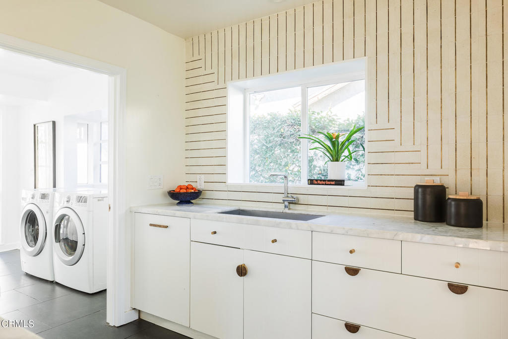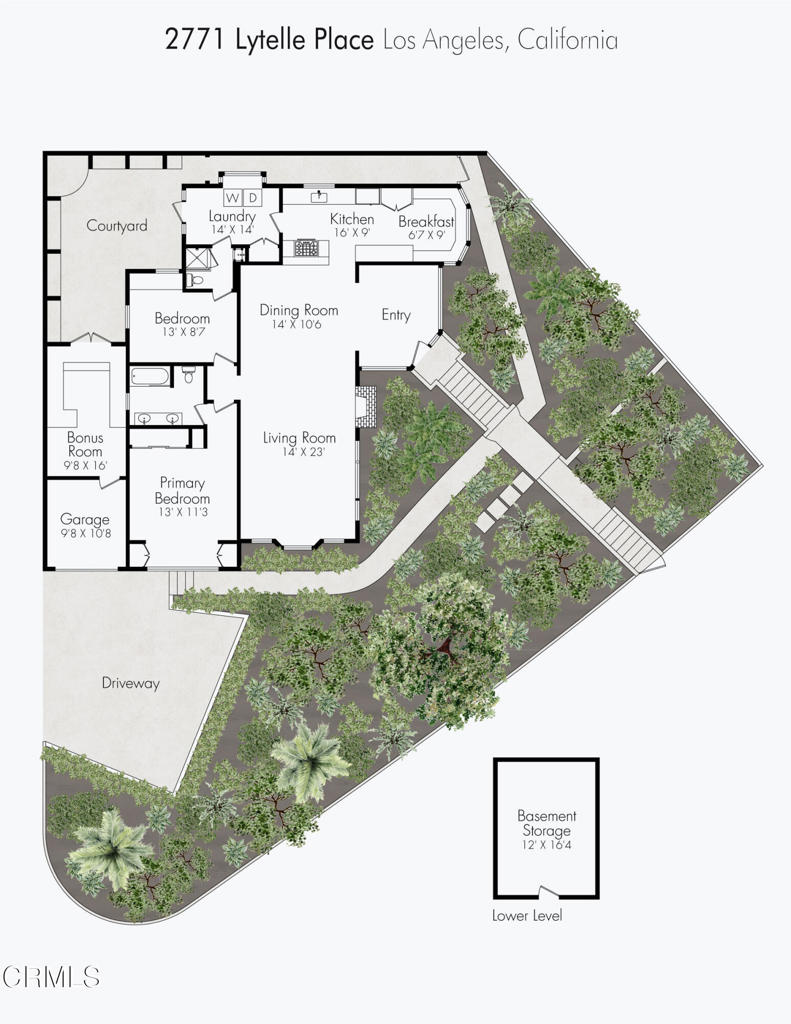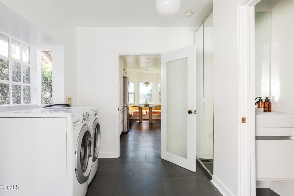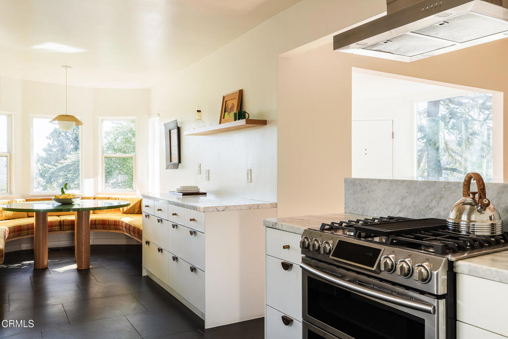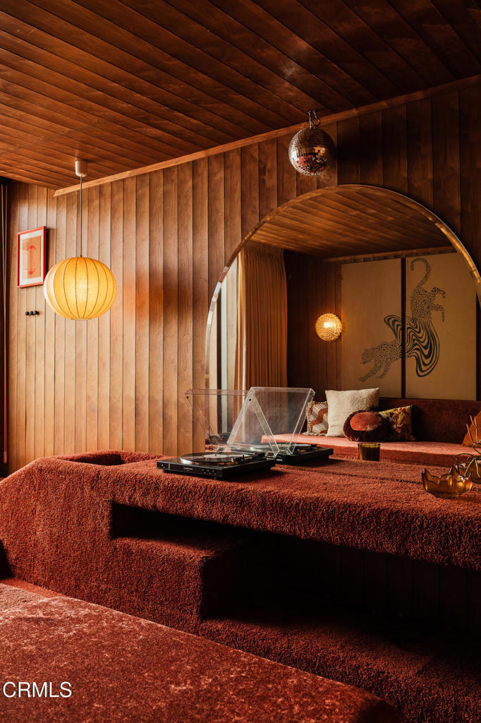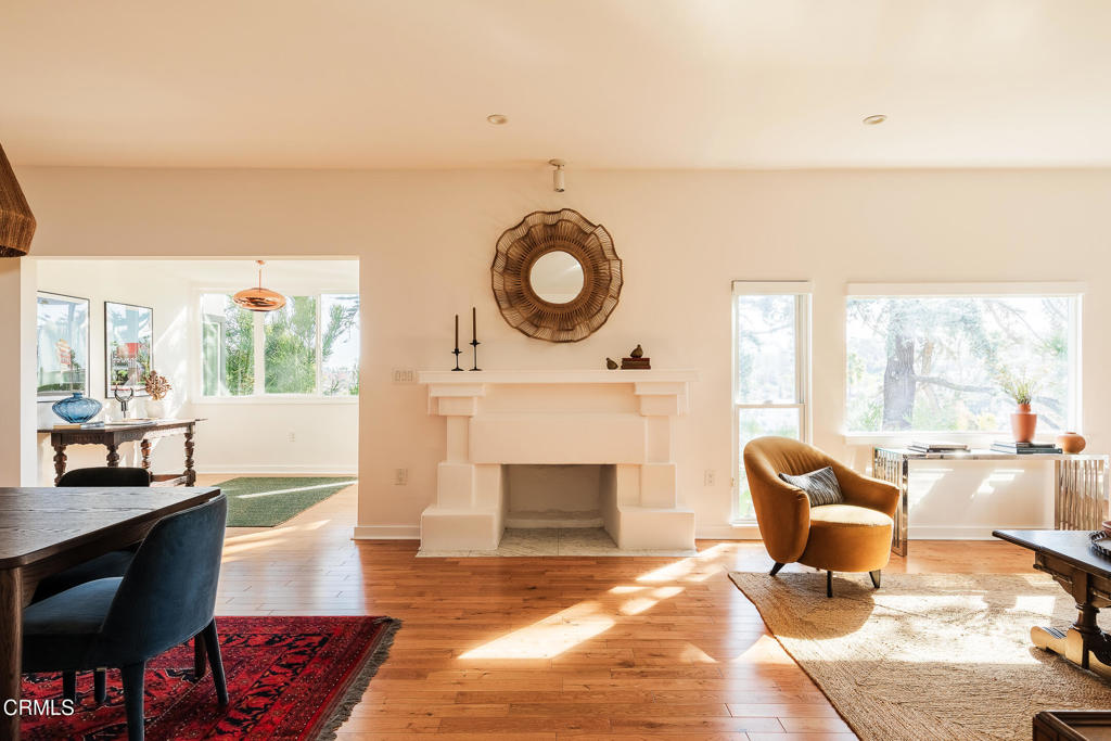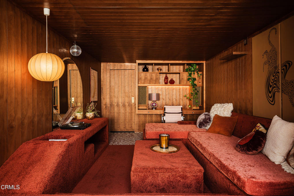 Perched atop a hill in Glassell Park, 2771 Lytelle Place is a soulful 1923 Spanish retreat with sweeping views and sunrise-to-sunset light. The home opens into a dedicated entry space that flows to the expansive living room - open, bright, with high ceilings - ideal for both relaxed everyday living and entertaining. There are two roomy bedrooms and bathrooms, offering comfortable, well-proportioned spaces for rest, work, or guests. The updated kitchen is anchored by a custom circular banquette nook, creating a warm, communal space to dine, while thoughtfully renovated bathrooms and a dedicated, spacious laundry room add comfort and functionality. A bonus space, the sexy shag-carpet lounge, offers incredible flexibility: perfect as a media room, conversation pit, or creative hideaway. The den opens directly to the patio for easy indoor-outdoor flow. Outside, a jacuzzi integrates perfectly into the walled courtyard with plentiful built-in seating, while the front yard features a lush garden of native plants, fruit trees, and cacti, with a patio that is ideal for entertaining. The elevated setting delivers expansive views and a deep sense of privacy. The garage is complemented by bonus basement space, offering flexibility for storage, organization, or creative use.Ideally located near some of Northeast LA's favorite spots, the home is just minutes from Capri Club, the Dunsmoor, Bub and Grandma's, and the dining and shopping scene along York Boulevard. This is a home with personality, warmth, and soul--beautifully perched, perfectly situated, and designed to be enjoyed from morning light to golden-hour sunsets.