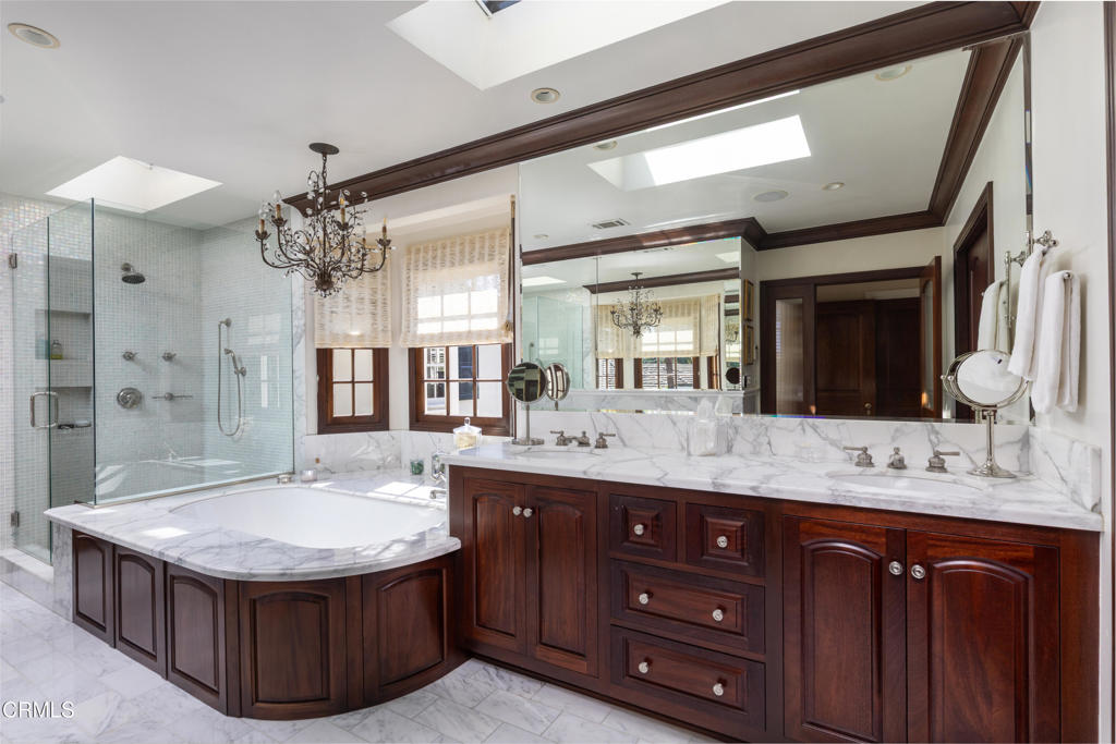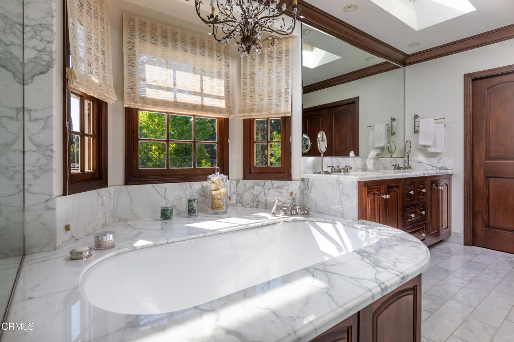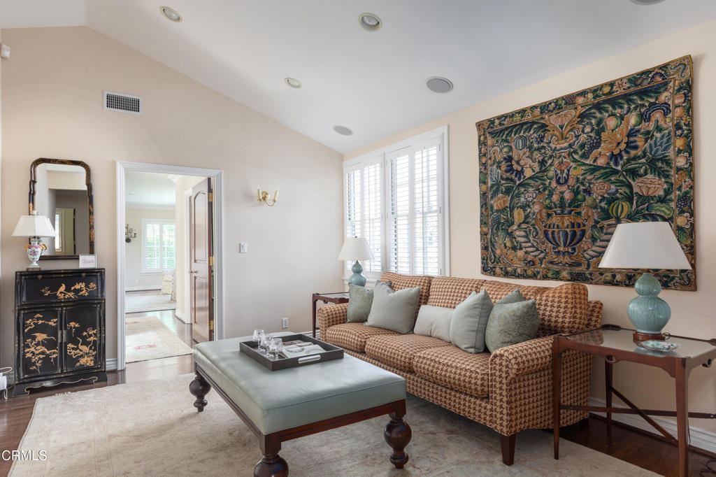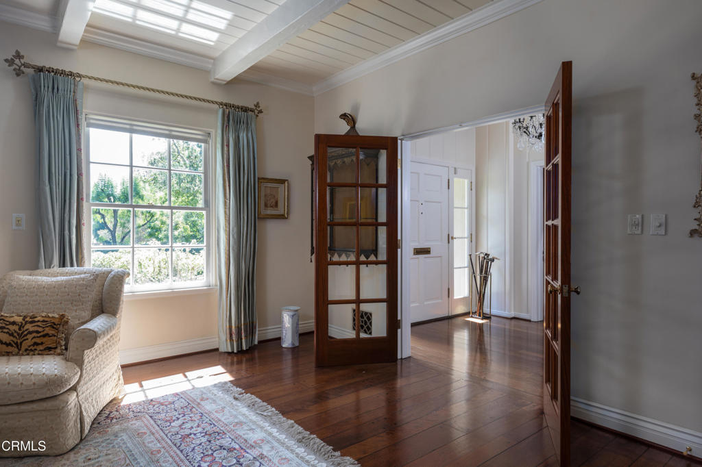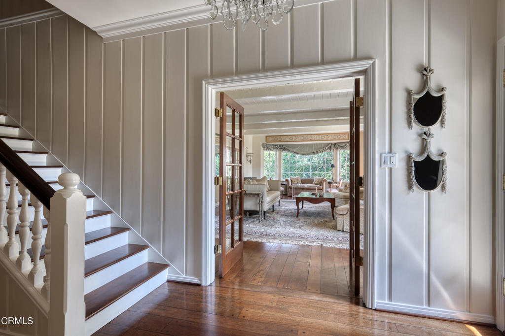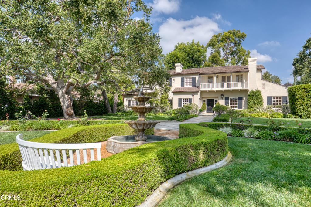 Extraordinary San Marino Monterey Colonial Estate. As you enter though the elegant wrought iron gates and continue up the horseshoe driveway, this private 1932 Monterey Colonial beauty reveals itself amongst the manicured gardens and central fountain. The formal entry reveals the generous light filled formal living room with original beamed ceilings and fireplace. Adjacent to the entry is also the intimate private library with crafted built-ins and additional fireplace. There is a formal dining room with an original stained beamed ceiling and French doors to the rear patios. The expansive chef's kitchen is epic. Surrounding the center kitchen island with its service sink, built-ins and seating, are the Wolf six burner cooktop and double ovens, Sub Zero refrigeration, multiple dishwashers, a microwave, and walk-in pantry. The adjoining great room includes additional casual dining, media area, custom built-ins, and a fireplace with access through multiple French doors to the loggia, outdoor kitchen, and pool areas. A laundry room, ensuite bedroom, and powder room complete the first level. The second level offers a relaxing lounge area that leads to the luxurious primary suite that includes dual walk-in closets and a large spa like bath. There are two additional wings on this level, each with two bedrooms and one bath for a total of six bedrooms and three baths on the upper level. The lower level of the estate includes a second more intimate media area, generous storage, a gym, and a music room for late night sessions with friends. In addition, there is a custom wet bar with wine refrigeration and racking. Back at the main level, the family, dining, and living rooms all have access through French doors to the rear yard which includes an ample outdoor entertaining space with multiple seating and dining areas, covered loggia with heaters, fireplace, custom kitchen, and bar. The nearly one-acre flat parcel is ideal for large formal celebrations to impromptu touch football games. This is a very special turn-key estate in the heart of San Marino awaiting its next owner.
