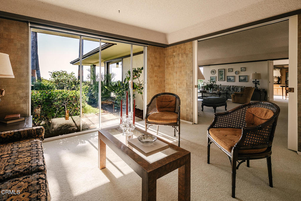 Perched at the end of a quiet cul-de-sac in La Canada Flintridge, 5703 Catherwood is a classic mid-century home defined by privacy, architectural integrity, and extraordinary 180-degree views. The vistas stretch across mountains and open sky, and on clear days extend all the way to the Pacific Ocean--an ever-changing panorama that anchors the home and elevates daily living. Walls of glass and nine sliding doors create exceptional indoor-outdoor ease, opening to dedicated patios, and framing the views from nearly every room. A generous living room takes full advantage of the outlook, offering a dramatic yet serene space for gathering and entertaining, while a separate dining room provides a more formal setting, also oriented toward the scenery. The kitchen flows into a family room, both connecting directly to their own patios--ideal for casual living, morning coffee, and effortless entertaining.The layout includes three bedrooms plus a den that could easily function as a fourth bedroom, office, or studio. Set on an expansive lot with generous flat outdoor space, the property feels secluded and peaceful, with multiple areas to enjoy the landscape and views. Rich with numerous original mid-century details and strong architectural bones, this is a rare opportunity to thoughtfully bring a special home up to date while preserving its timeless design. With unmatched views, privacy, and potential, 5703 Catherwood is truly something special.